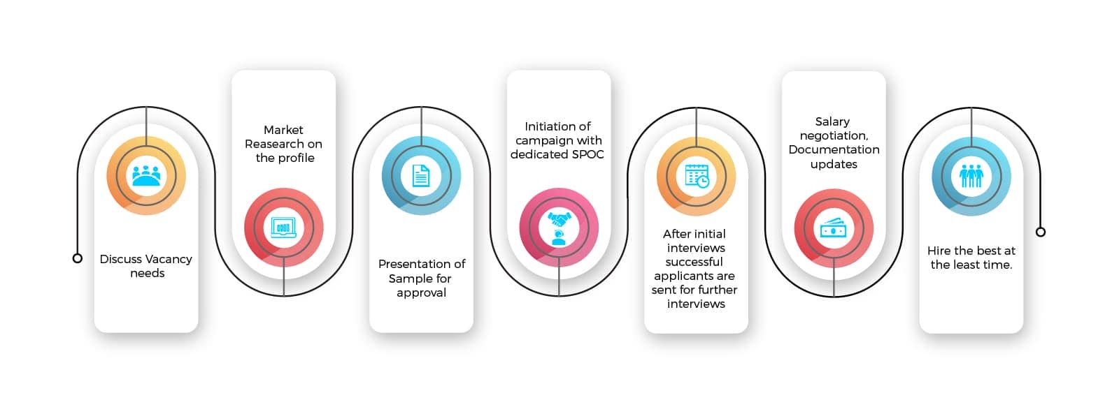 Whether companies have a seasonal hiring need that calls upon a specialized skill-set, require reinforcement during an employee absence, or want to evaluate fit before making a longer-term hiring commitment, contract staffing is the best choice. Our Contract staffing process enables companies to mitigate the risk related to wrong full time hire, high cost and compliance errors.